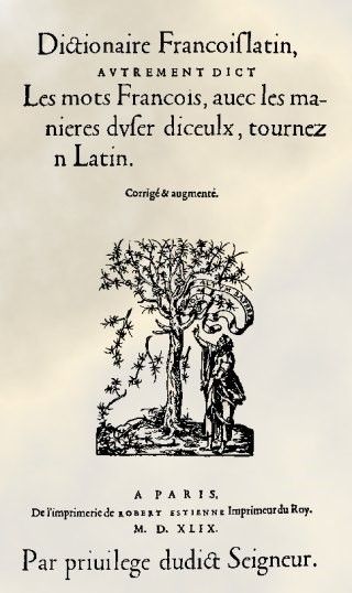 Mais le lexicographe et imprimeur royal Robert Etienne (1503-1559), dont le dictionnaire, paru en 1539, constitue le plus ancien dictionnaire latin et français, n’admettait l’accent aigu sur le e que lorsque cette lettre était en fin de mot. Ce n’est qu’en 1600 et 1615 que l’on inventa réellement l’accent aigu formant le é.